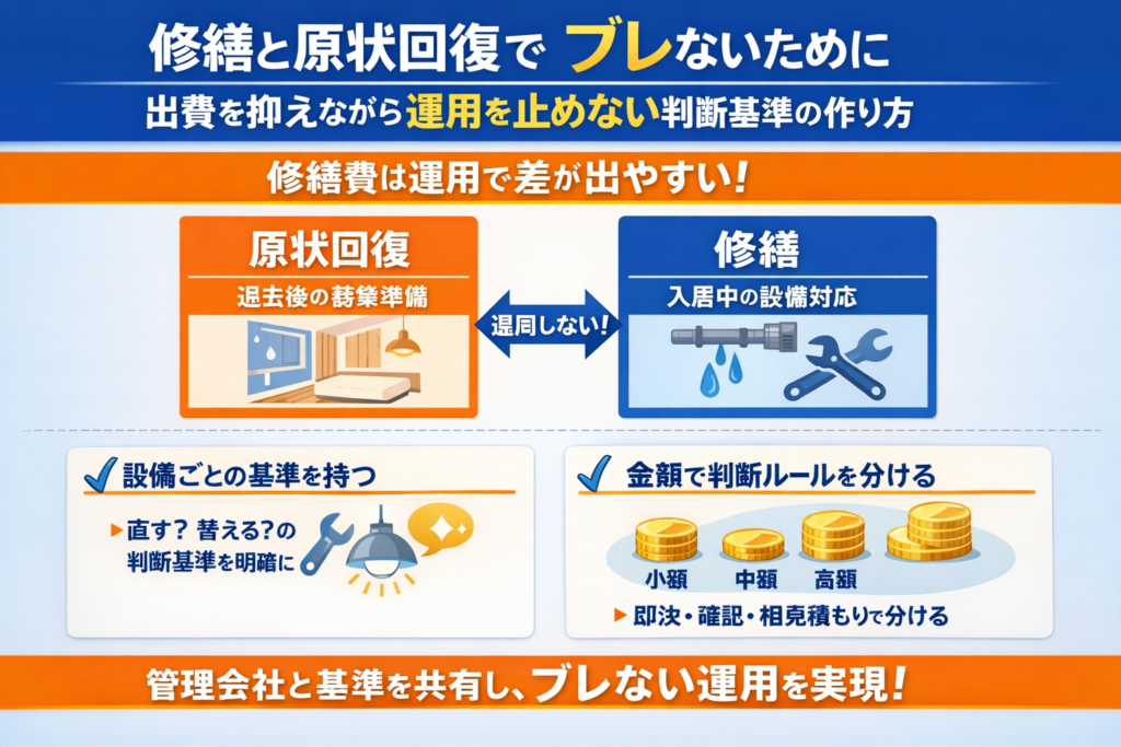 修繕と原状回復の判断軸を整えておくことが大切です。